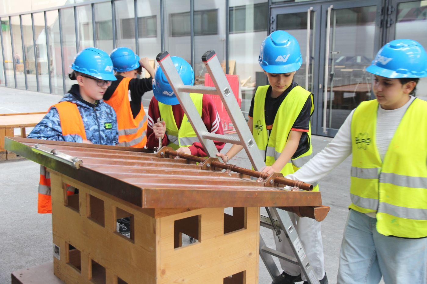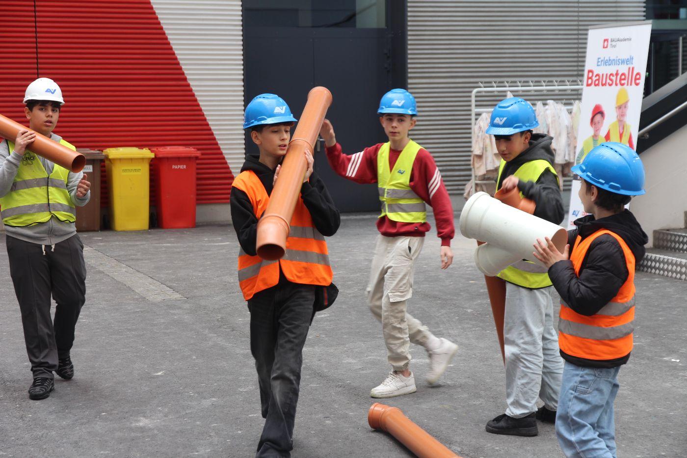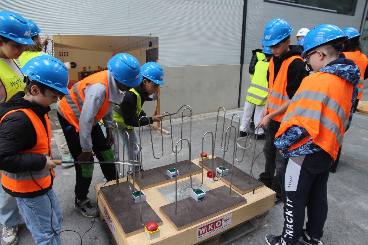 Bauen ist für Kinder ein zentrales Thema. Schon von klein auf bauen sie mit verschiedensten Materialien wie Holzklötzen, Polstern, Schachteln und Zweigen. An diesem ausgeprägten kindlichen Interesse setzt die Tiroler Bauwirtschaft mit der Ausstellung „Erlebniswelt Baustelle“ an und geht einen Schritt weiter, als es zu Hause im Kinderzimmer oder in der Schule möglich wäre. Beim Projekt „Erlebniswelt Baustelle“ erfahren die Kinder, wie komplex und aufwändig eine richtige Baustelle ist und wie viele Berufsgruppen darin involviert sind. Sie können verschiedene Berufe ausprobieren, sich in die Rolle der/ die BaumeisterIn, MaurerIn, Zimmermann/-frau, PflastererIn, BodenlegerIn etc. begeben und sich durch die Ausstellung planen, messen, mörteln, mauern, pflastern, malen, und zimmern.