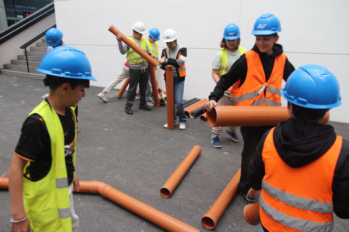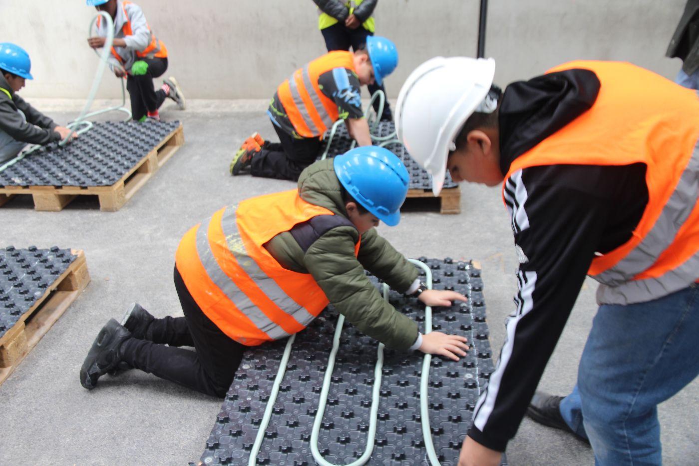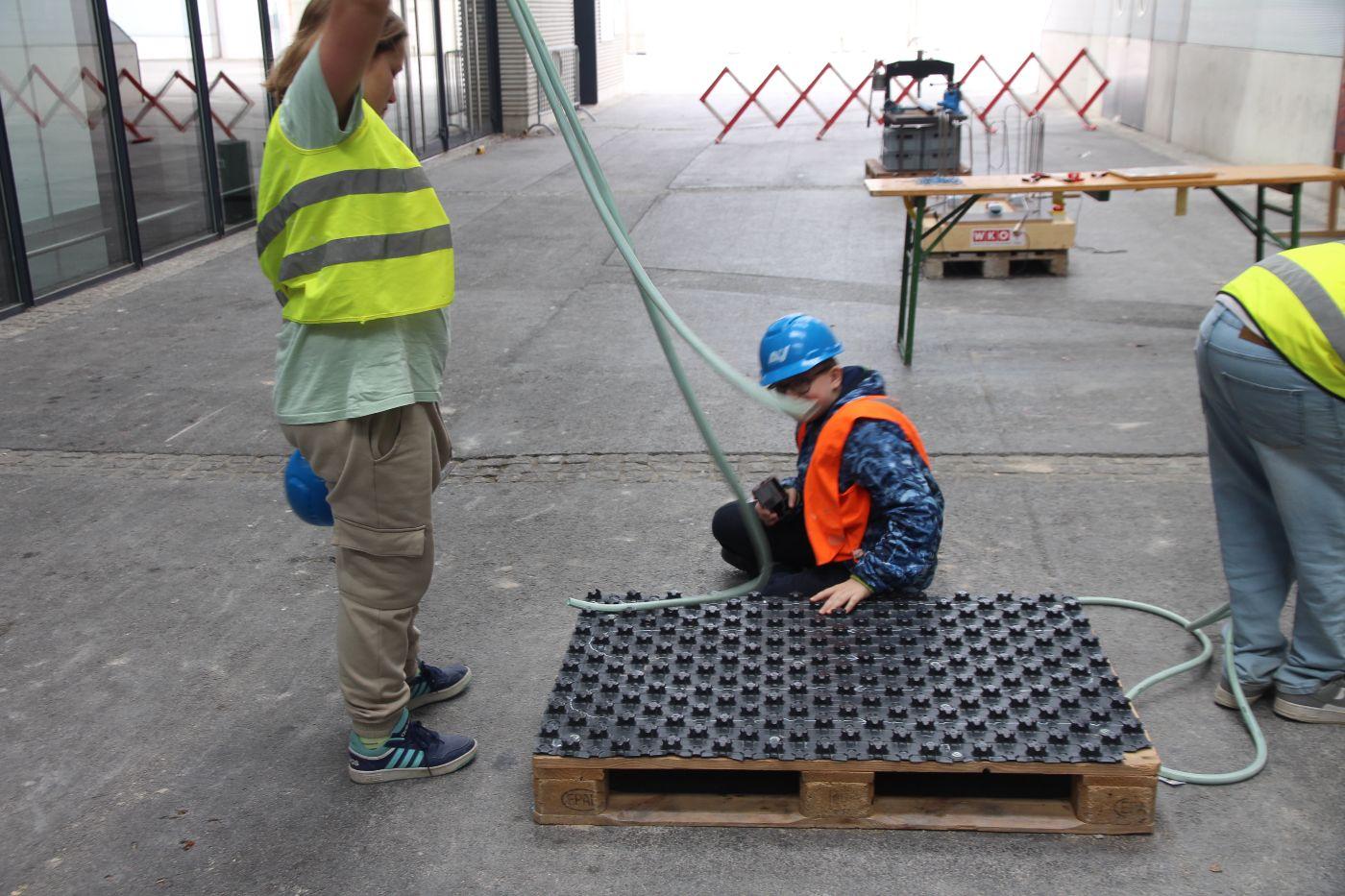 Bauen ist für Kinder ein zentrales Thema. Schon von klein auf bauen sie mit verschiedensten Materialien wie Holzklötzen, Polstern, Schachteln und Zweigen. An diesem ausgeprägten kindlichen Interesse setzt die Tiroler Bauwirtschaft mit der Ausstellung „Erlebniswelt Baustelle“ an und geht einen Schritt weiter, als es zu Hause im Kinderzimmer oder in der Schule möglich wäre. Beim Projekt „Erlebniswelt Baustelle“ erfahren die Kinder, wie komplex und aufwändig eine richtige Baustelle ist und wie viele Berufsgruppen darin involviert sind. Sie können verschiedene Berufe ausprobieren, sich in die Rolle der/ die BaumeisterIn, MaurerIn, Zimmermann/-frau, PflastererIn, BodenlegerIn etc. begeben und sich durch die Ausstellung planen, messen, mörteln, mauern, pflastern, malen, und zimmern.