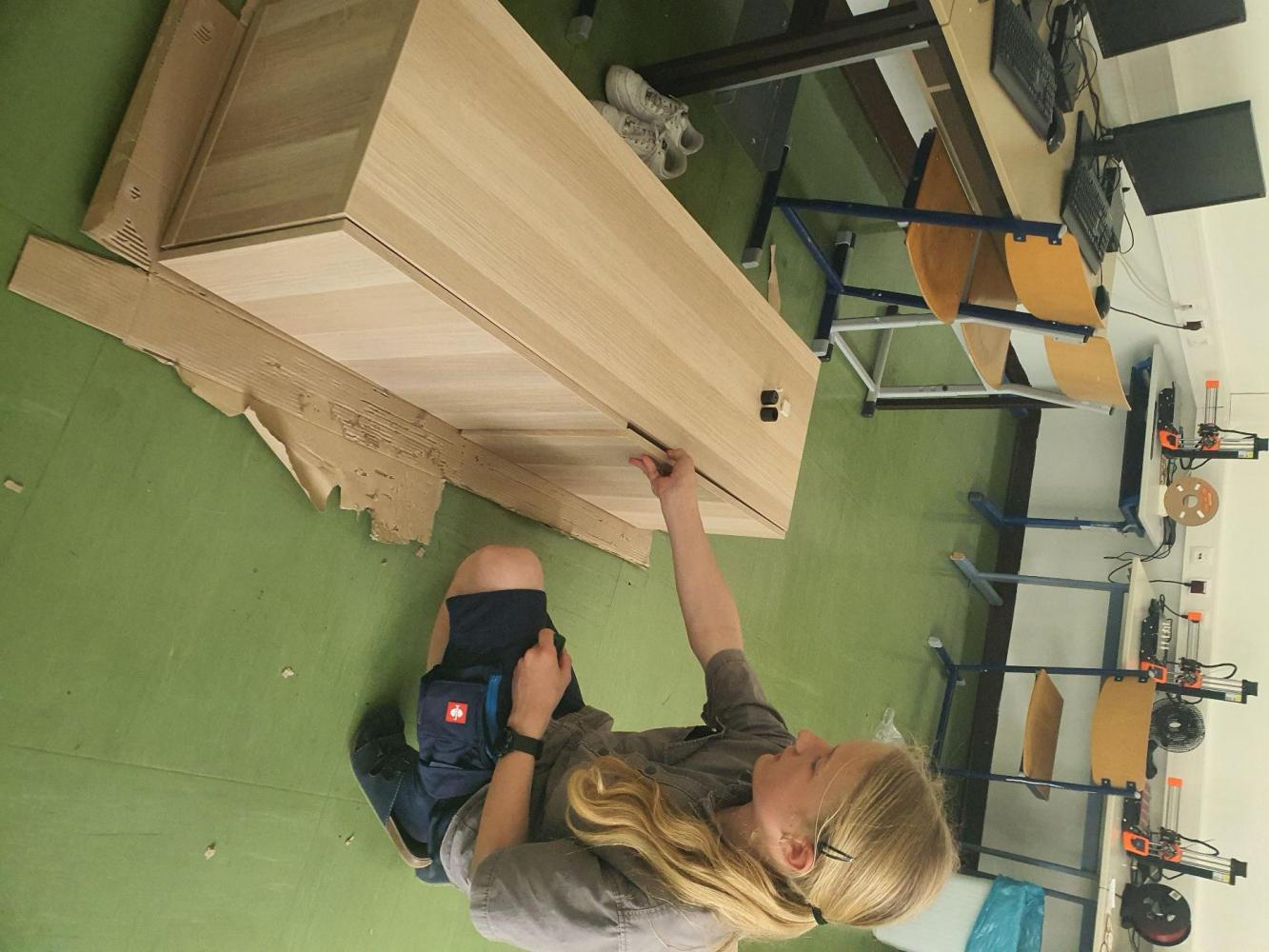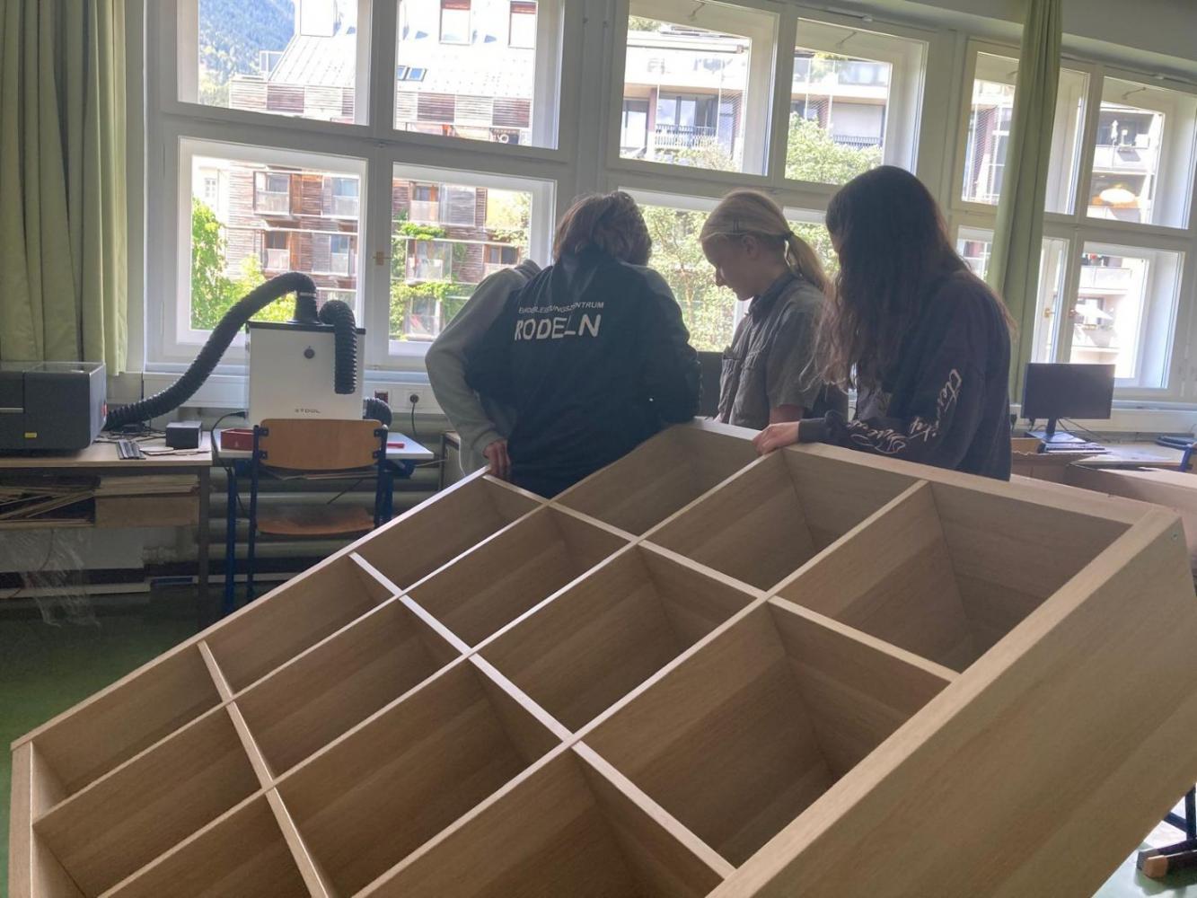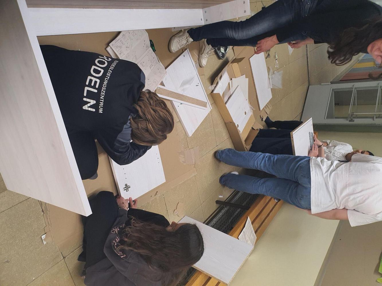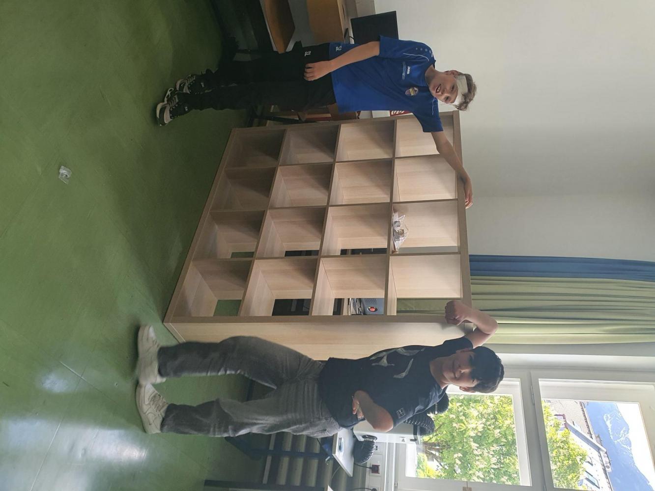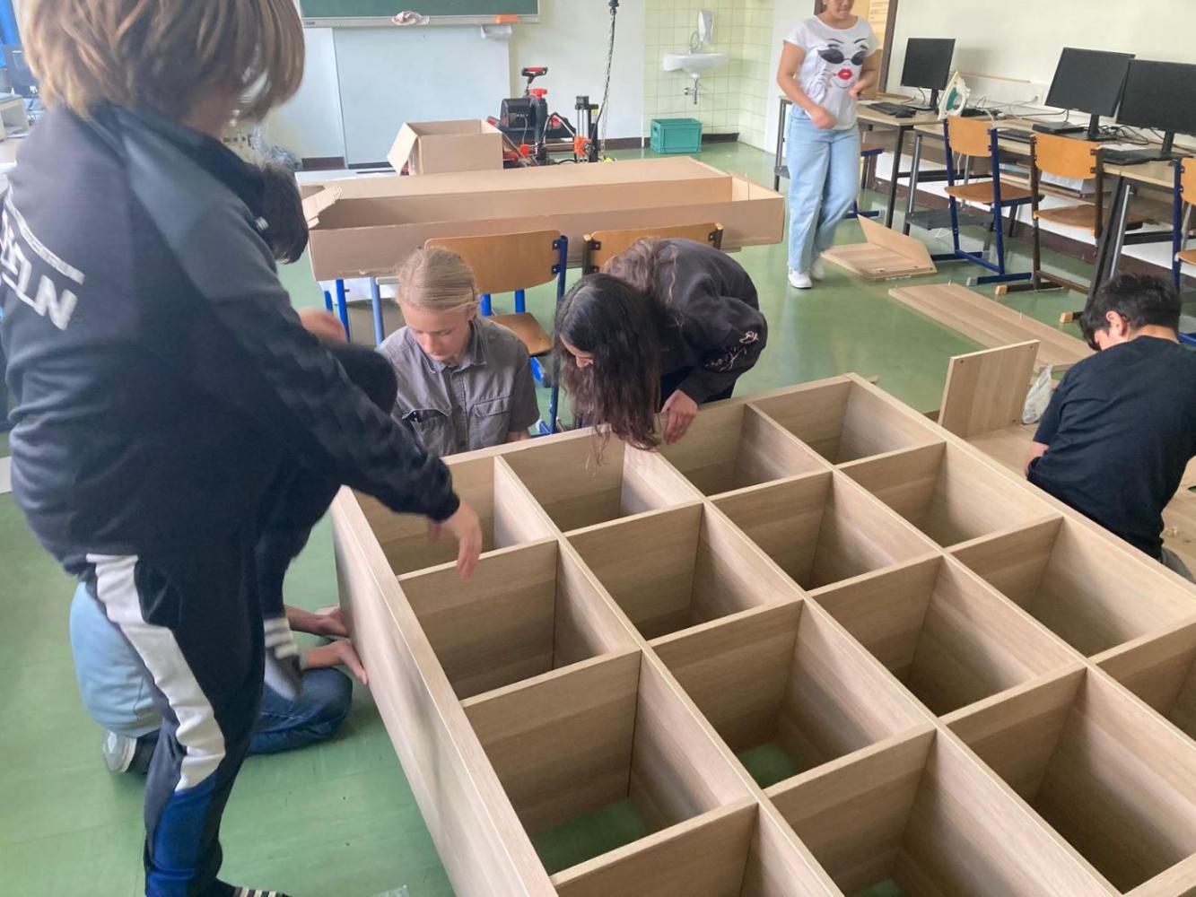 In einer Präsentationsrunde stellten die Gruppen ihre Entwürfe vor. Ein Konzept wurde schließlich ausgewählt - auf dieser Grundlage erfolgte die Möbelbestellung. Die gelieferten Möbel wurden von den Schüler:innen selbstständig aufgebaut.