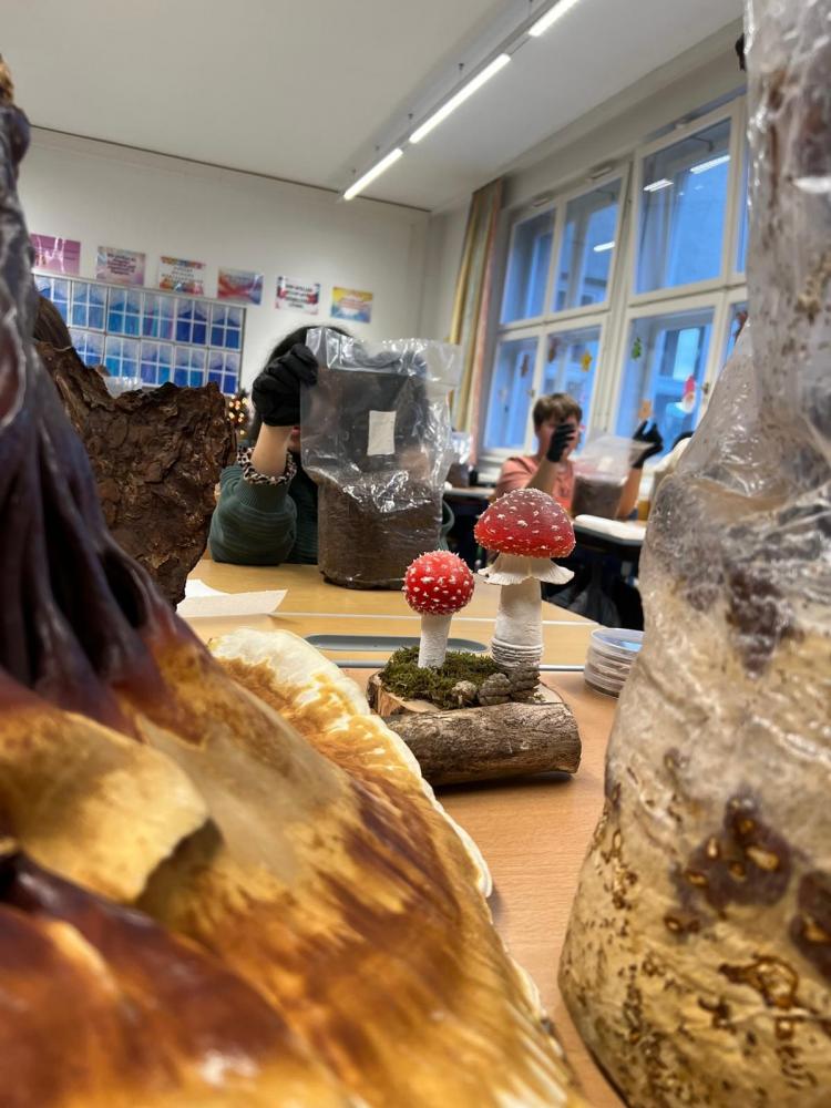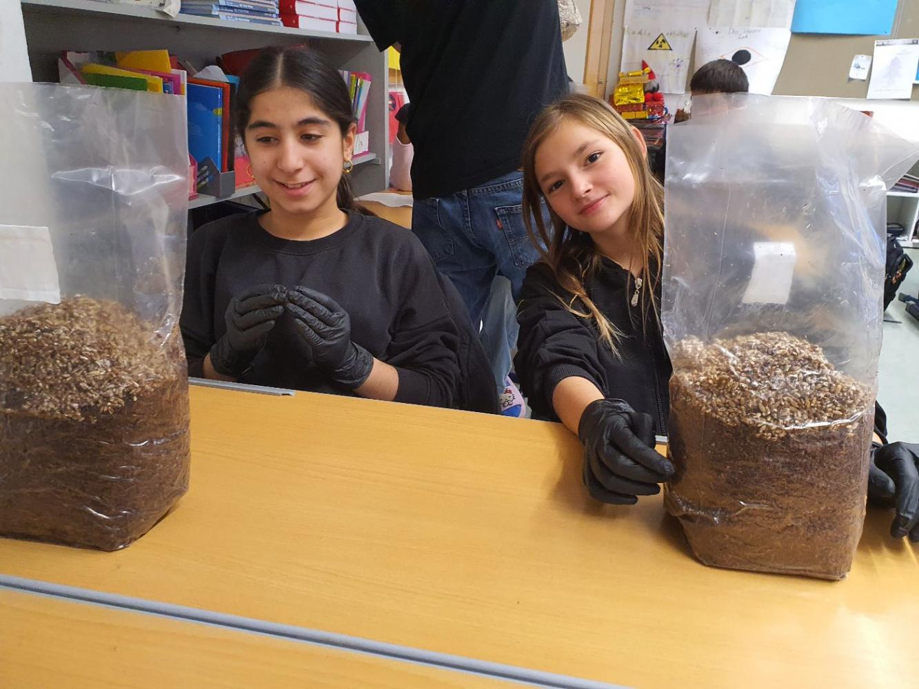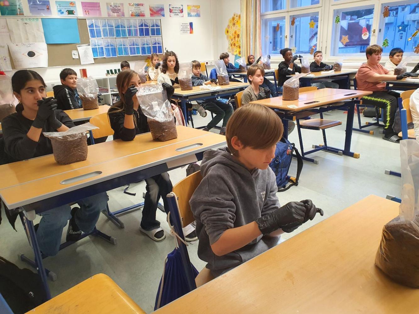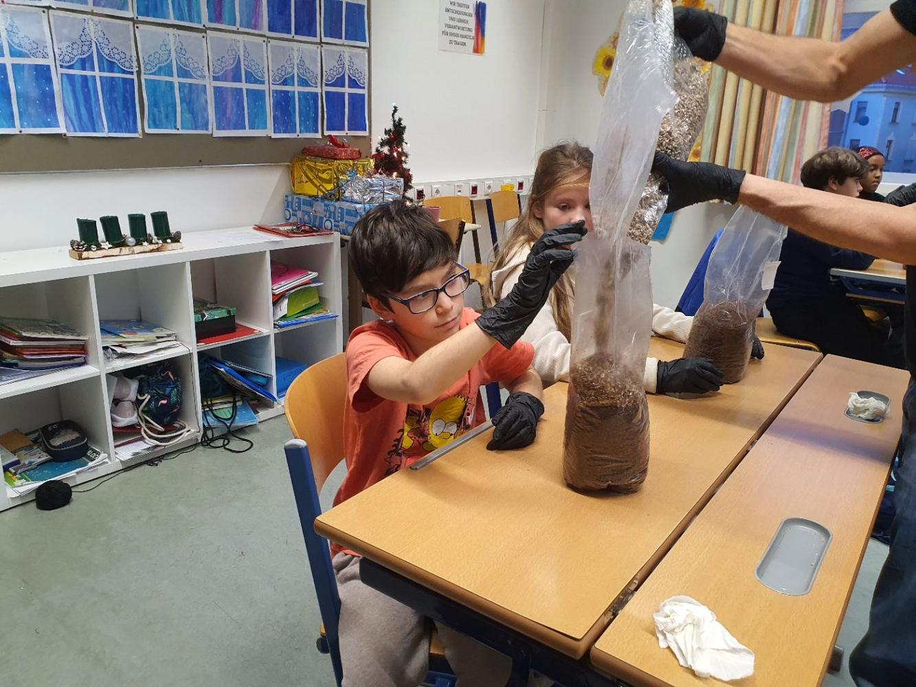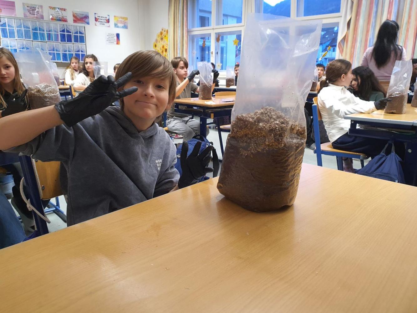Die Schüler:innen der 2m werden zu Pilzzüchter:innen
