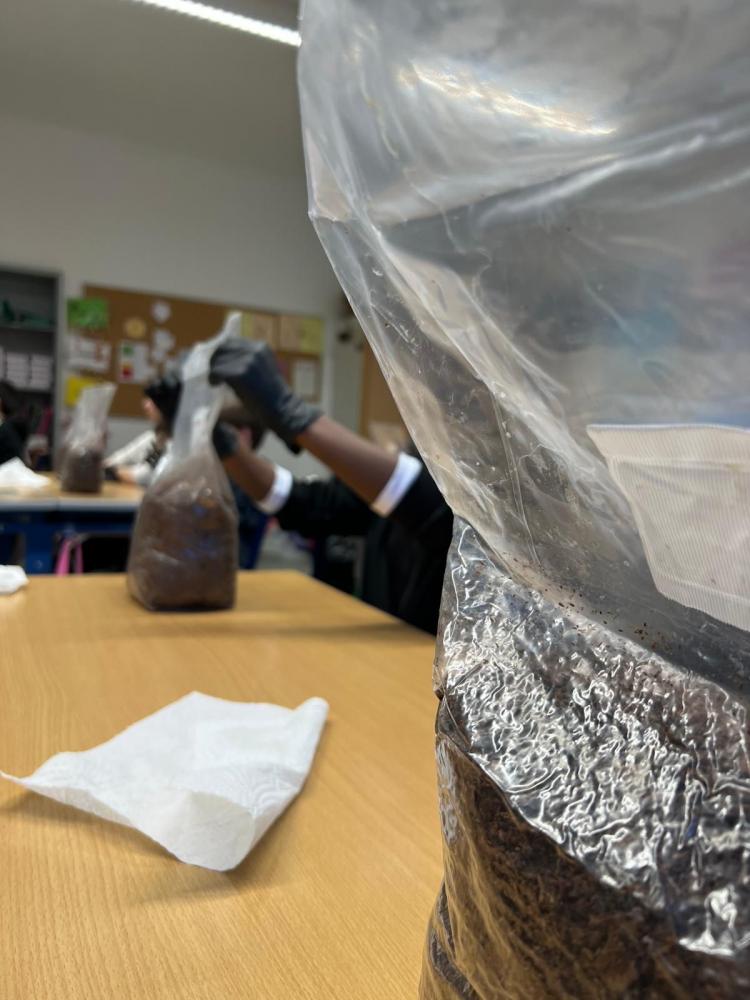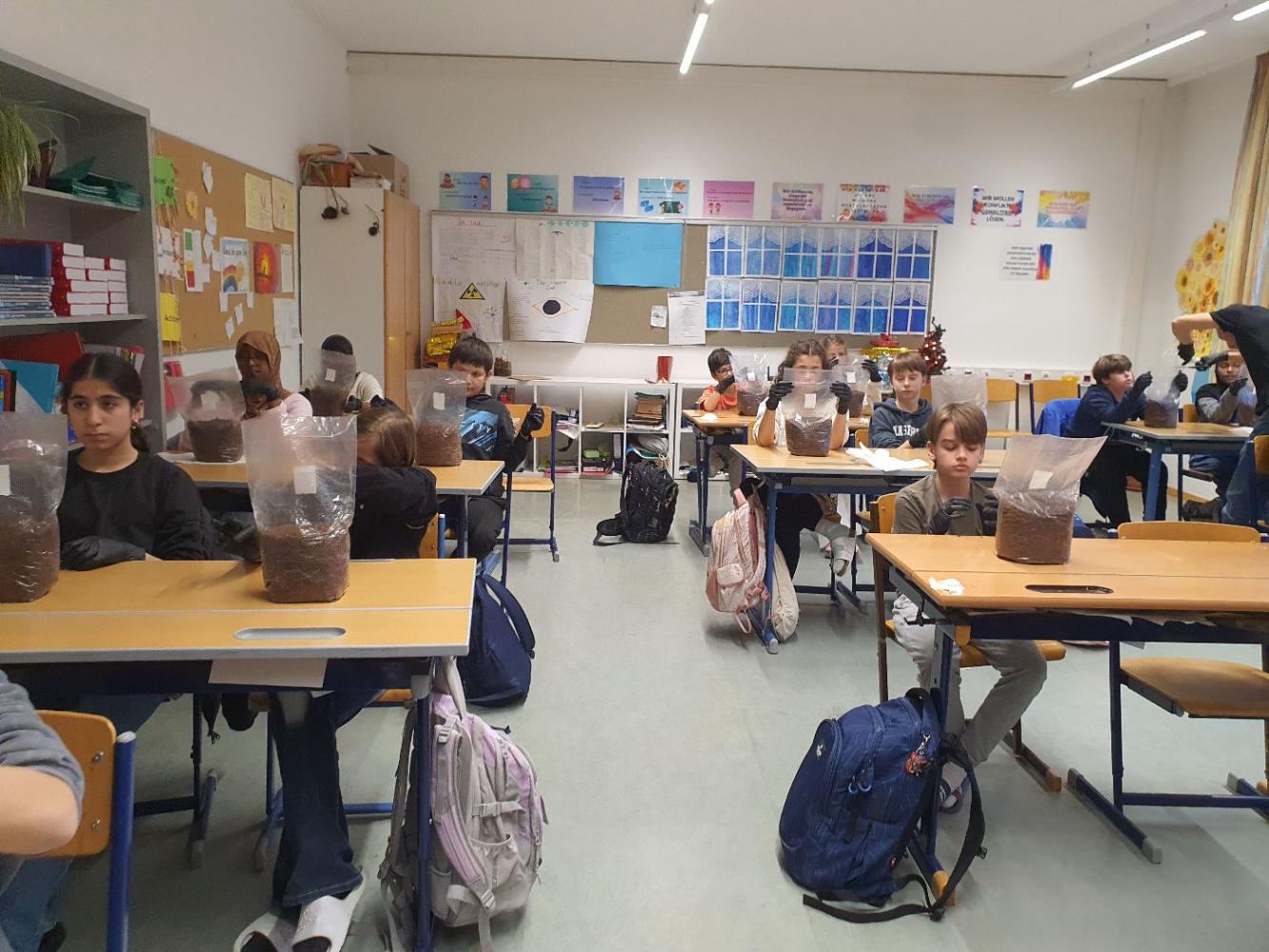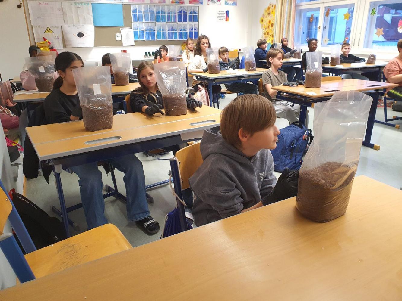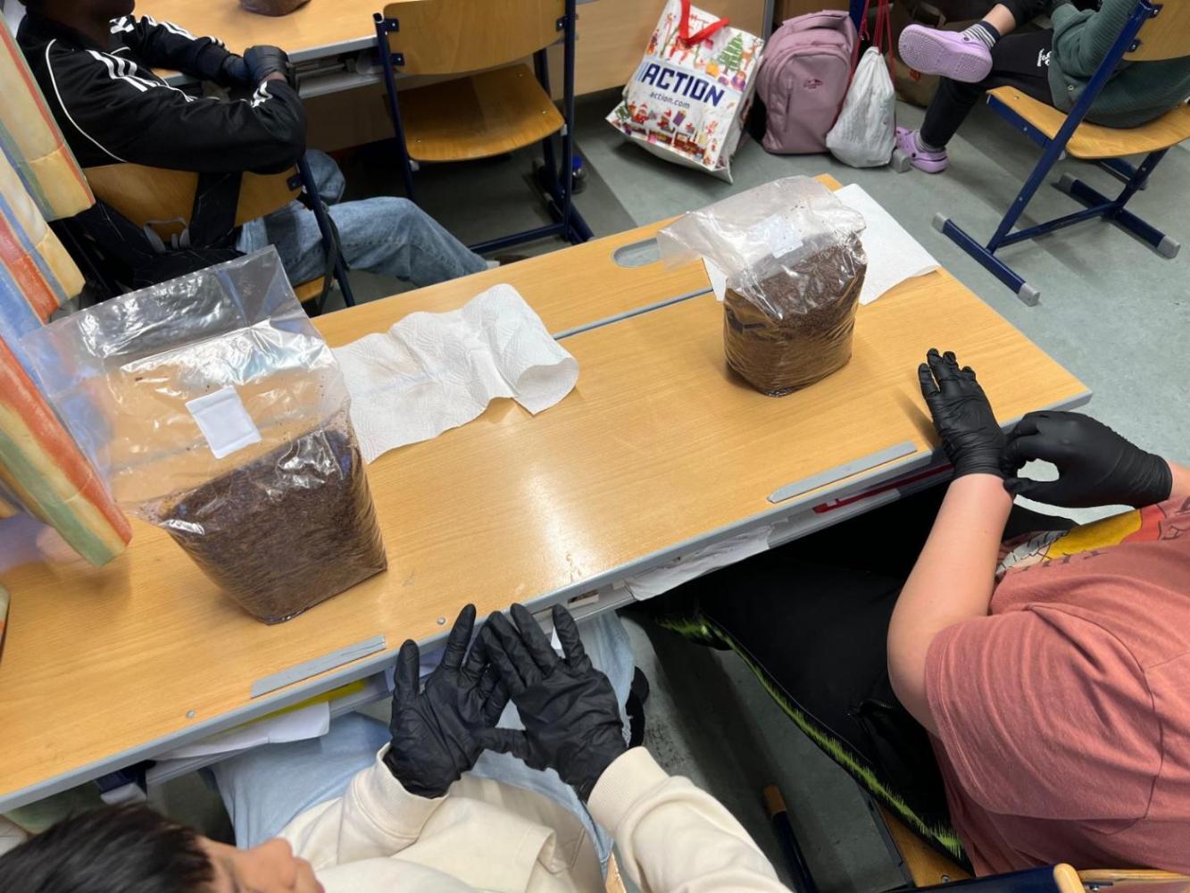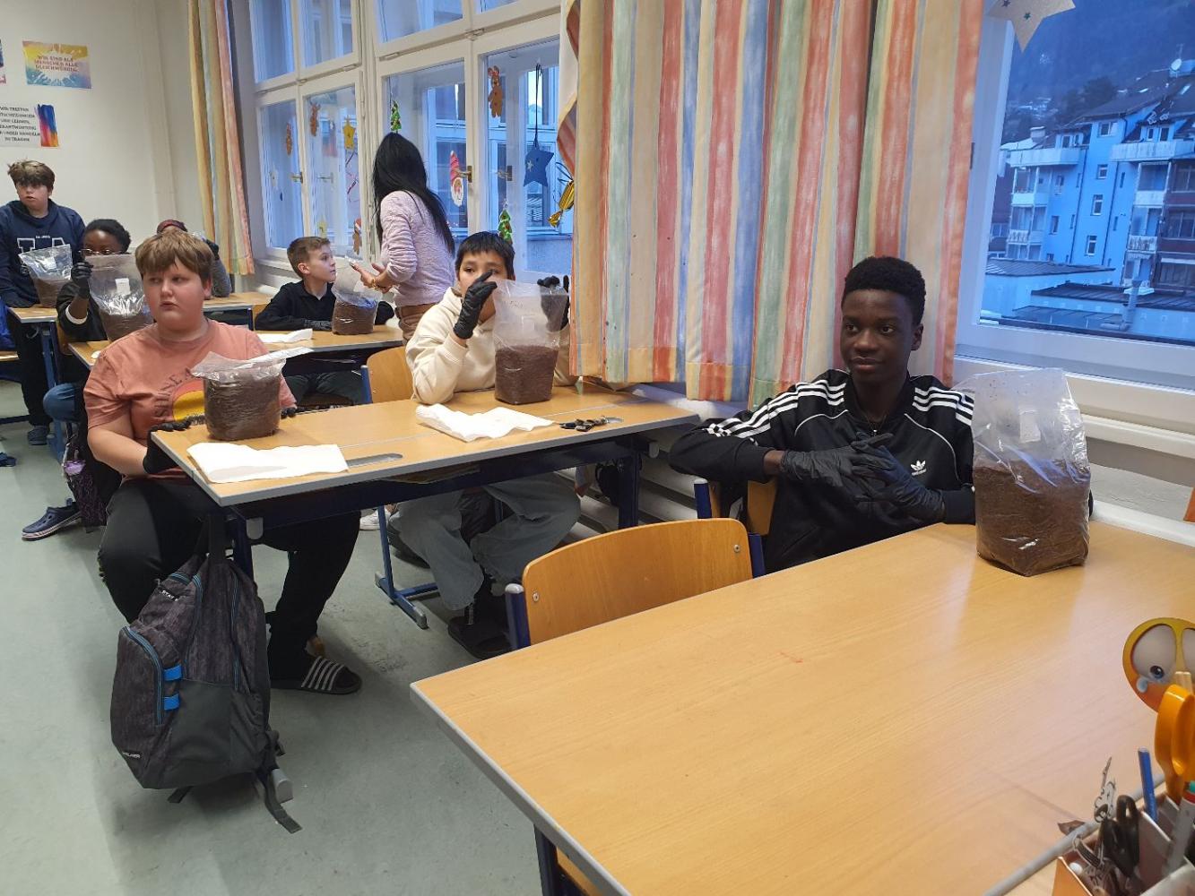 Die Schüler:innen der 2m werden zu Pilzzüchter:innen
