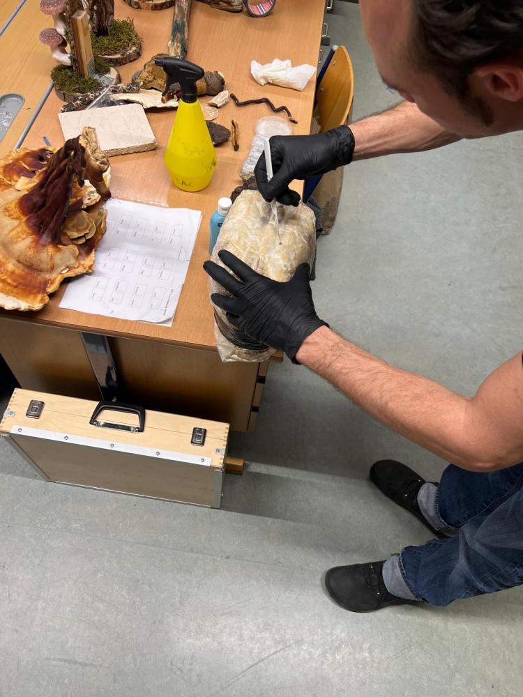 Nach dem interessanten Vortrag hatten wir sogar die Möglichkeit, selbst ein Substrat mit Austern-Seitlingen zu beimpfen. In etwa einem Monat sollten die Seitlinge dann geerntet werden. Wir sind schon gespannt, wie sie schmecken!